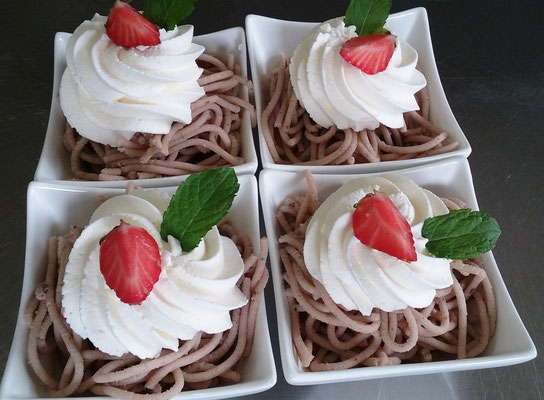 Apfelküchlein mit Vanillesauce, Vermicelle